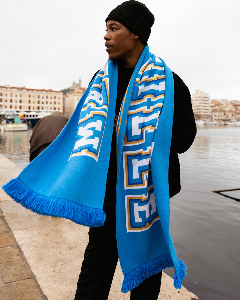 Pour tous les afficionados des balades sur le Vieux Port, des soirées festives au Vélodrome ou encore des apéros nocturnes à même la roche, cette écharpe vous accompagnera partout !